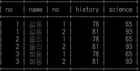 [질의1] tbl_namelist 테이블과 tbl_grades 테이블을 교차조인하여 조회하시오
