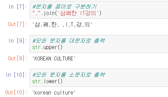 2. join 함수로 문자 구분, upper 와 lower 로 대/소문자로 출력하기